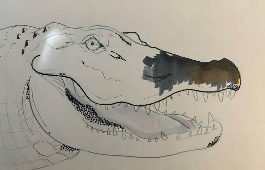 A rought Draft from 5th grade, a sketch of an alligator with a done with pencil that I never got to complete.