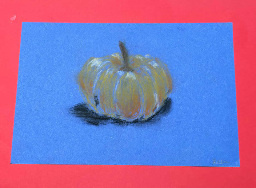 Using oil pastels, I created a pumpkin and its shadow–a simple and early demonstration of my artistic talent since I was only in third grade when I made this.
